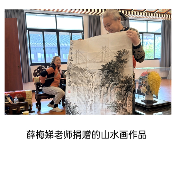 在随后的交流环节中,夏建峰院长首先展示了准备捐赠给寺院的一幅四尺整张作品。其后,书画院的艺术家们也纷纷呈现各自精心创作的代表之作。山水气象万千,花鸟生意盎然,人物形神兼备,书法笔走龙蛇——诸多佳作在古寺雅室中渐次展开,顿使满堂增色。众人围绕作品切磋交流、互相启发,艺术灵感在对话中不断激荡,现场洋溢着对传统书画艺术的诚挚热爱与执着追求。