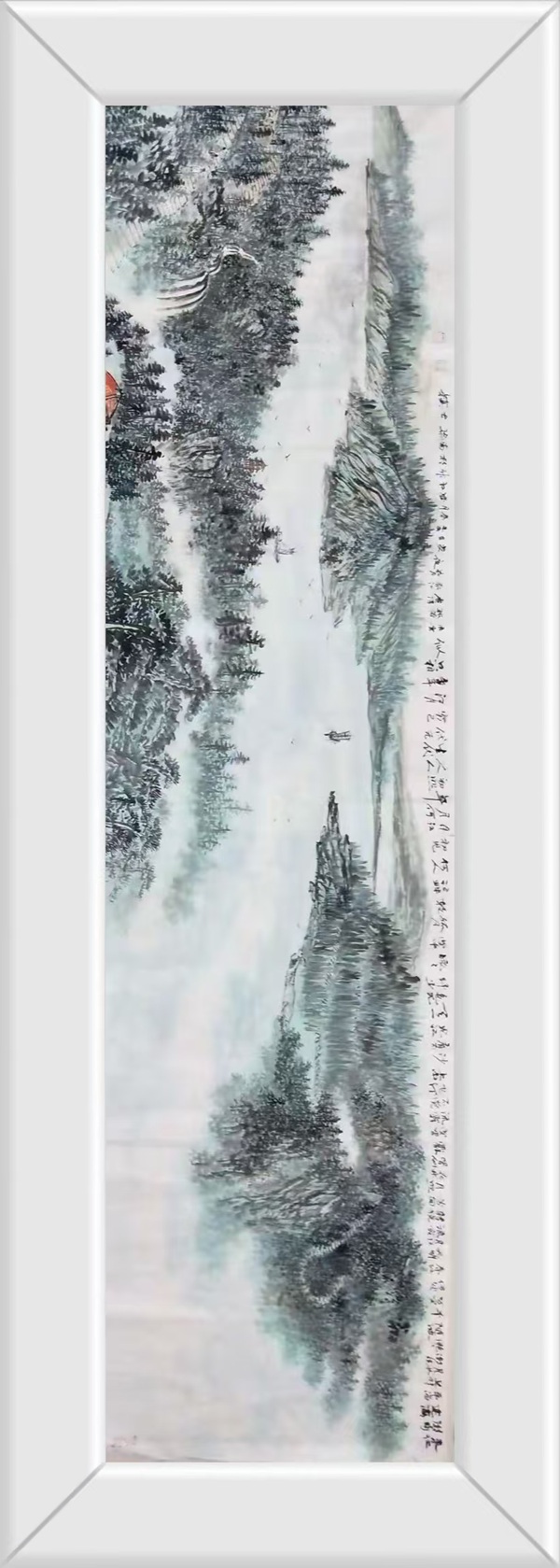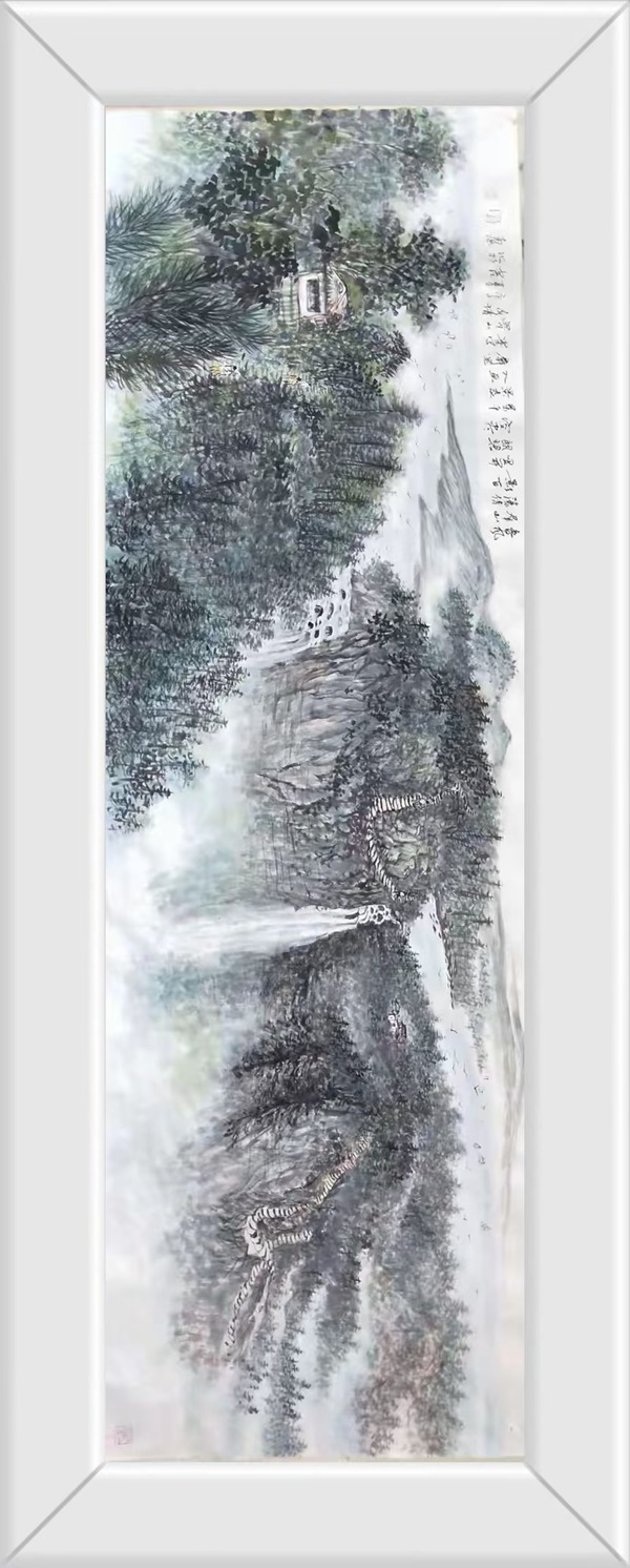 一幅上乘的山水画作,绝非单一元素的堆砌,而是自然万象的诗意交响。亭台楼阁与峰峦溪涧需遵循「虚实相生,疏密有致」的法则,通过巧妙的组合与叠加,让山石的雄浑与云雾的缥缈相得益彰。临习古画时,需像研读典籍般逐寸推敲,领悟每处皴法、每片留白背后的匠心,方能将古人笔意化作己用。